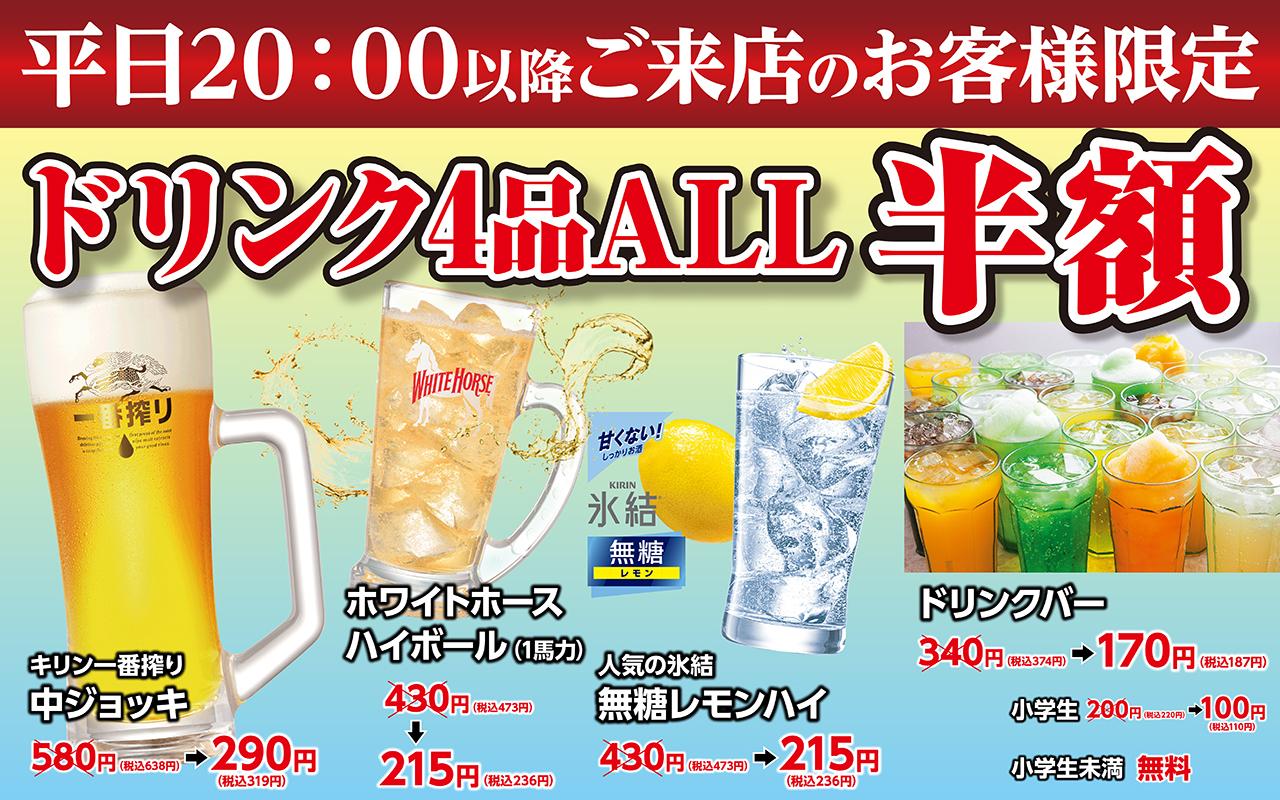 🍺ハッピーアワー(平日・店舗限定) 🍺
